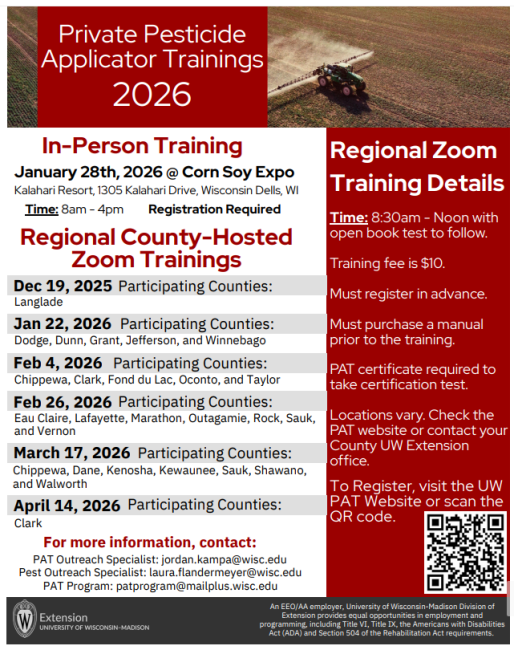 Manual Fee: $43 — must be purchased online at the UW PAT Store: https://patstore.wisc.edu/secure/default.asp Scroll down to Private Applicator Training; then select “General Farming 100/101”. A paper mail order form is available – mail order form – a check must be mailed with this option.